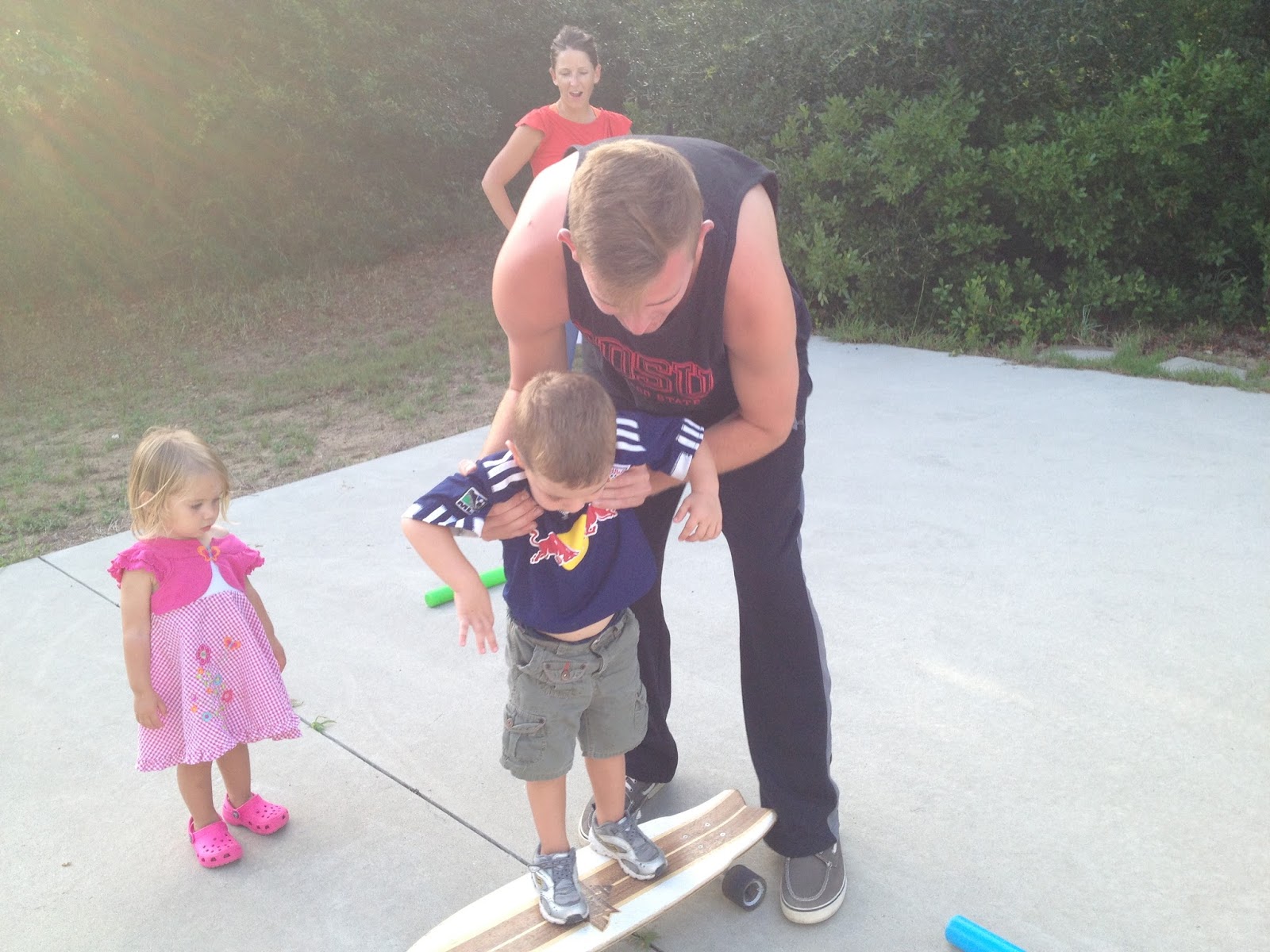 Joseph saw cousin Ryan walk in one day with his skateboard and became obsessed. Ryan was so good with the kids and gave them each rides.