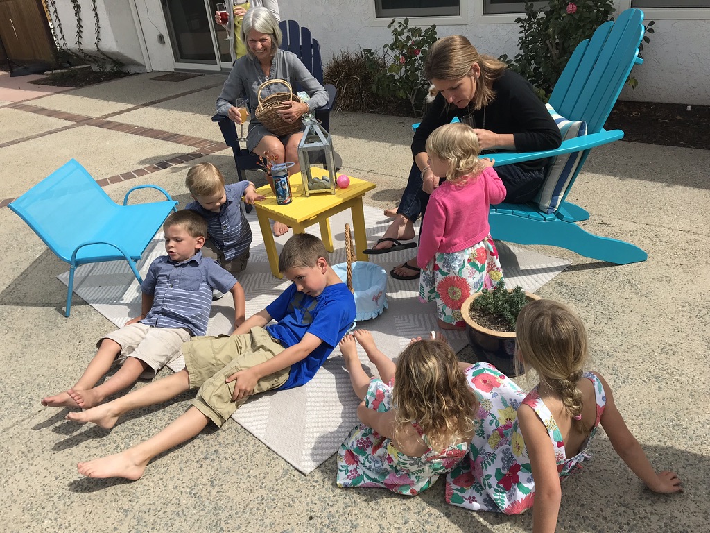 The Easter festivities began a week before Easter with an egg hunt with some of our friends from Ella's soccer team. We met at the Westwood club one afternoon for pizza and then an egg hunt which was a great time!